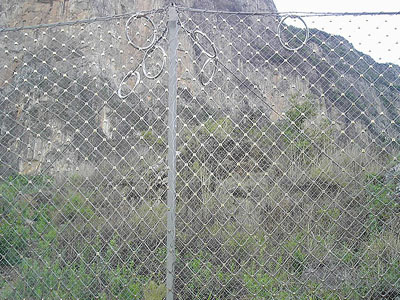 后者的安裝部分主要可以分為:測(cè)量定位---基挖開挖---基座安裝---鋼柱及上側(cè)拉鎖繩安裝---側(cè)拉錨桿安裝---上下支撐繩安裝---驗(yàn)收---格柵安裝---拉網(wǎng)。